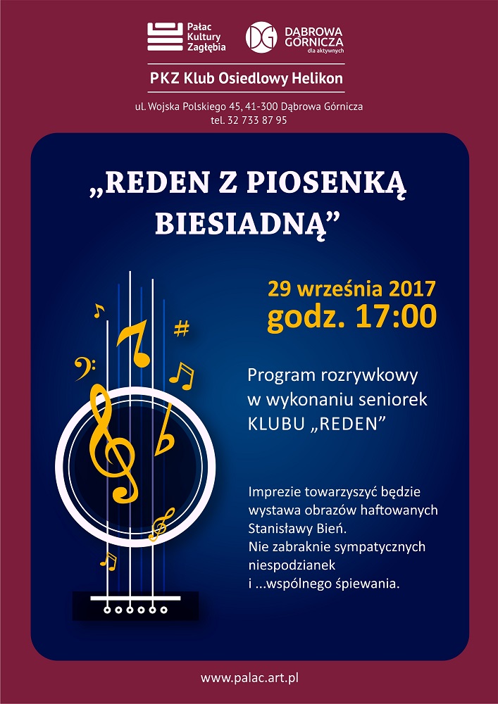 Wszystkim, którzy poszukują alternatywy dla melancholijnych, jesiennych dni zapraszamy do Klubu Osiedlowego Helikon na wieczorek muzyczny pod nazwą Reden z piosenką biesiadną.