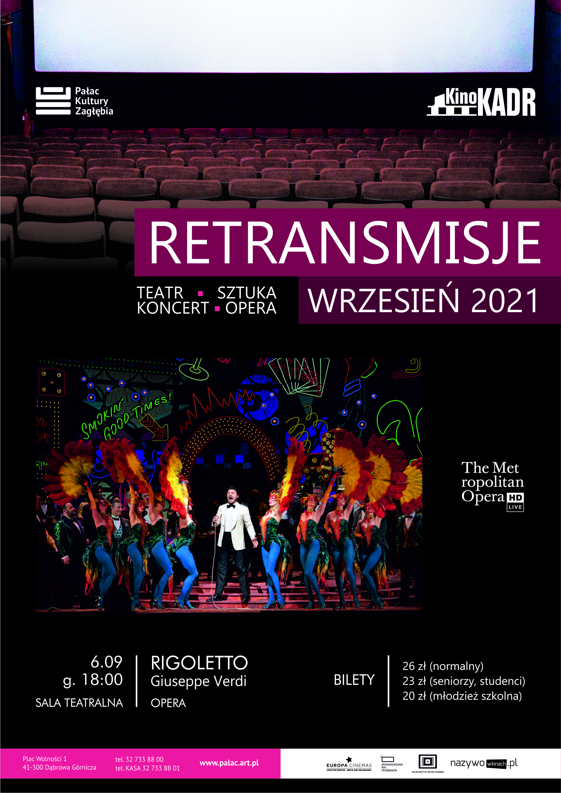 Reżyser Michael Meyer przenosi klasyczną operę Verdiego w realia Las Vegas lat 60. XX wieku. Tenor Piotr Beczała wciela się w rolę Księcia Mantui. U jego boku zobaczymy też barytona Željko Lučića w tytułowej roli i sopranistkę Dianę Damrau, wykonującą partię Gildy, córki Rigoletta, której życiu zagraża przestępcza przeszłość ojca.