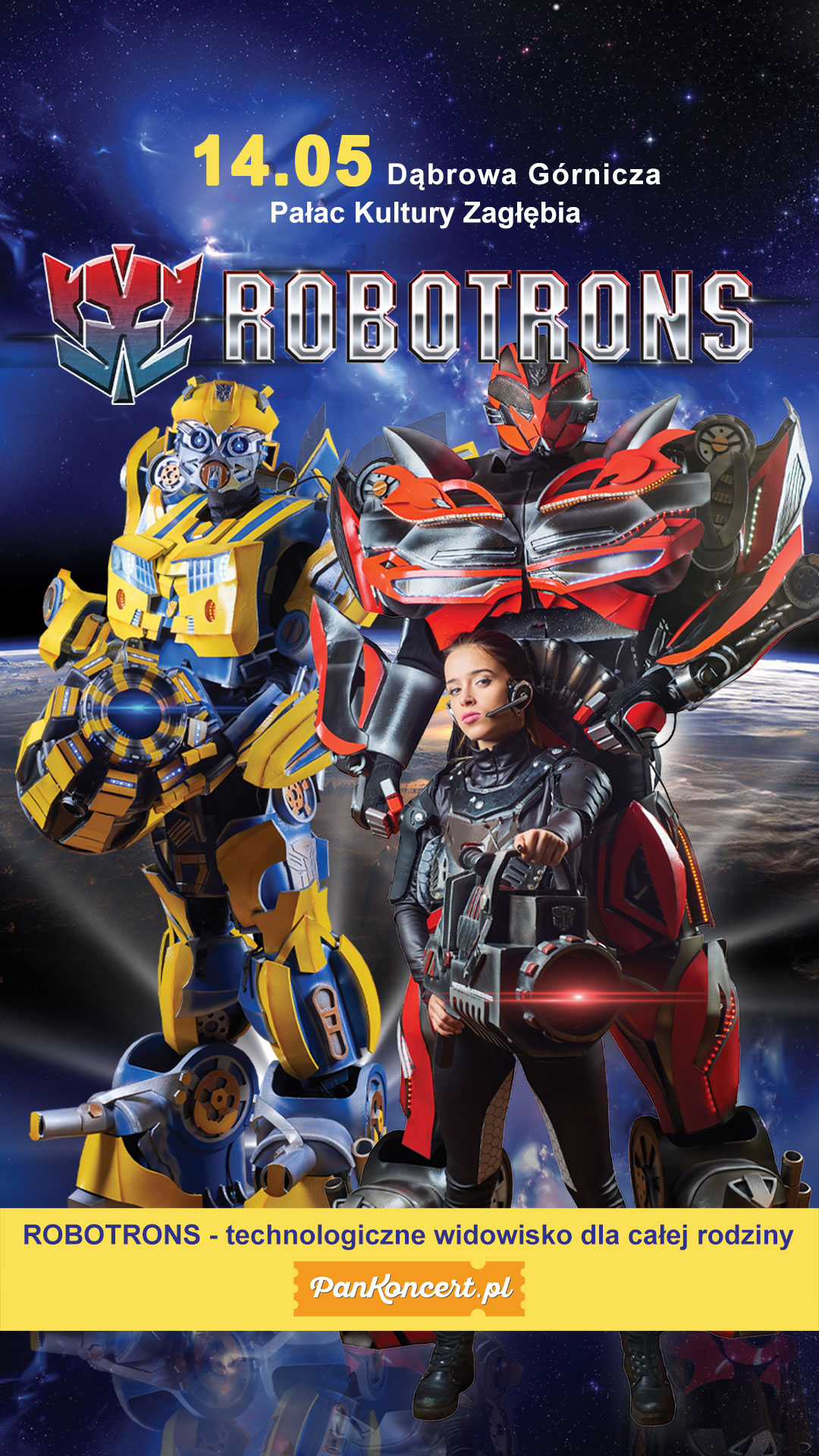 Zapraszamy na interaktywny mega-show dla całej rodziny! 14 maja o godz. 13:00 zapraszamy do Pałacu Kultury Zagłębia na Robotrons - Niepokonani Aniołowie Galaktyki.