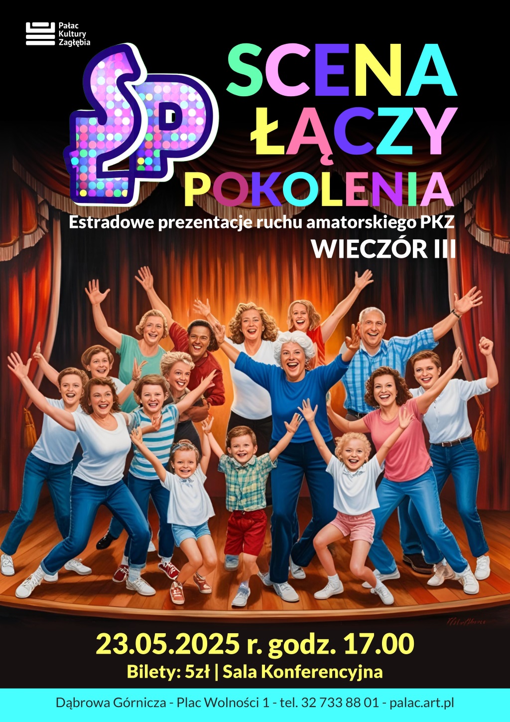 23 maja o godz. 17:00 zapraszamy do Sali Konferencyjnej (218, I piętro) na trzeci wieczór z cyklu Scena Łączy Pokolenia, w trakcie którego zaprezentują się uczestnicy amatorskiego ruchu artystycznego Pałacu Kultury Zagłębia. Tym razem scena będzie należeć do wokalistów i miłośników sztuki kabaretowej.