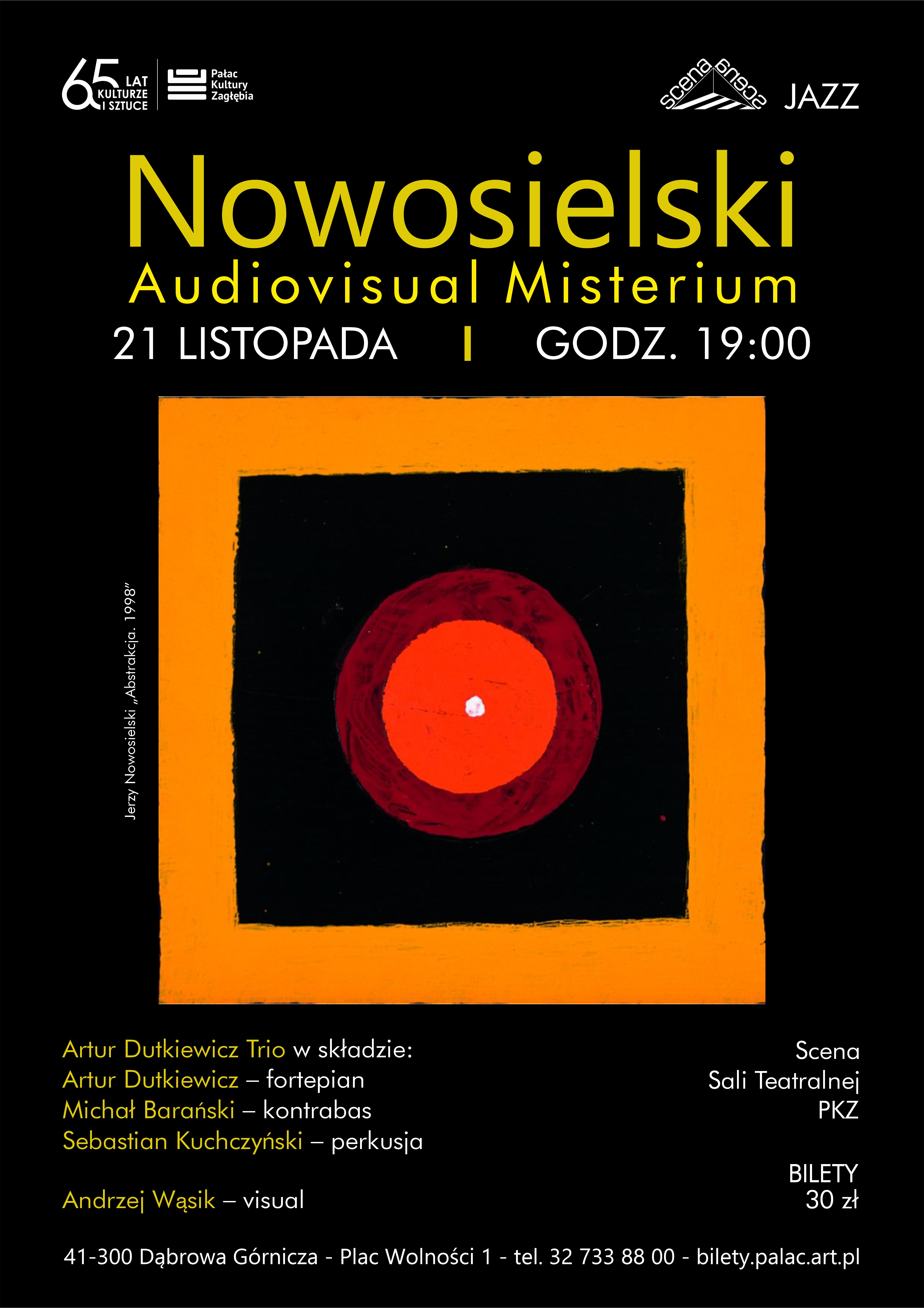 21 listopada o godz. 19:00 w aneksie scenicznym Sali Teatralnej Pałacu Kultury Zagłębia wystąpi zespół Artur Dutkiewicz Trio z projektem Nowosielski Audiovisual.