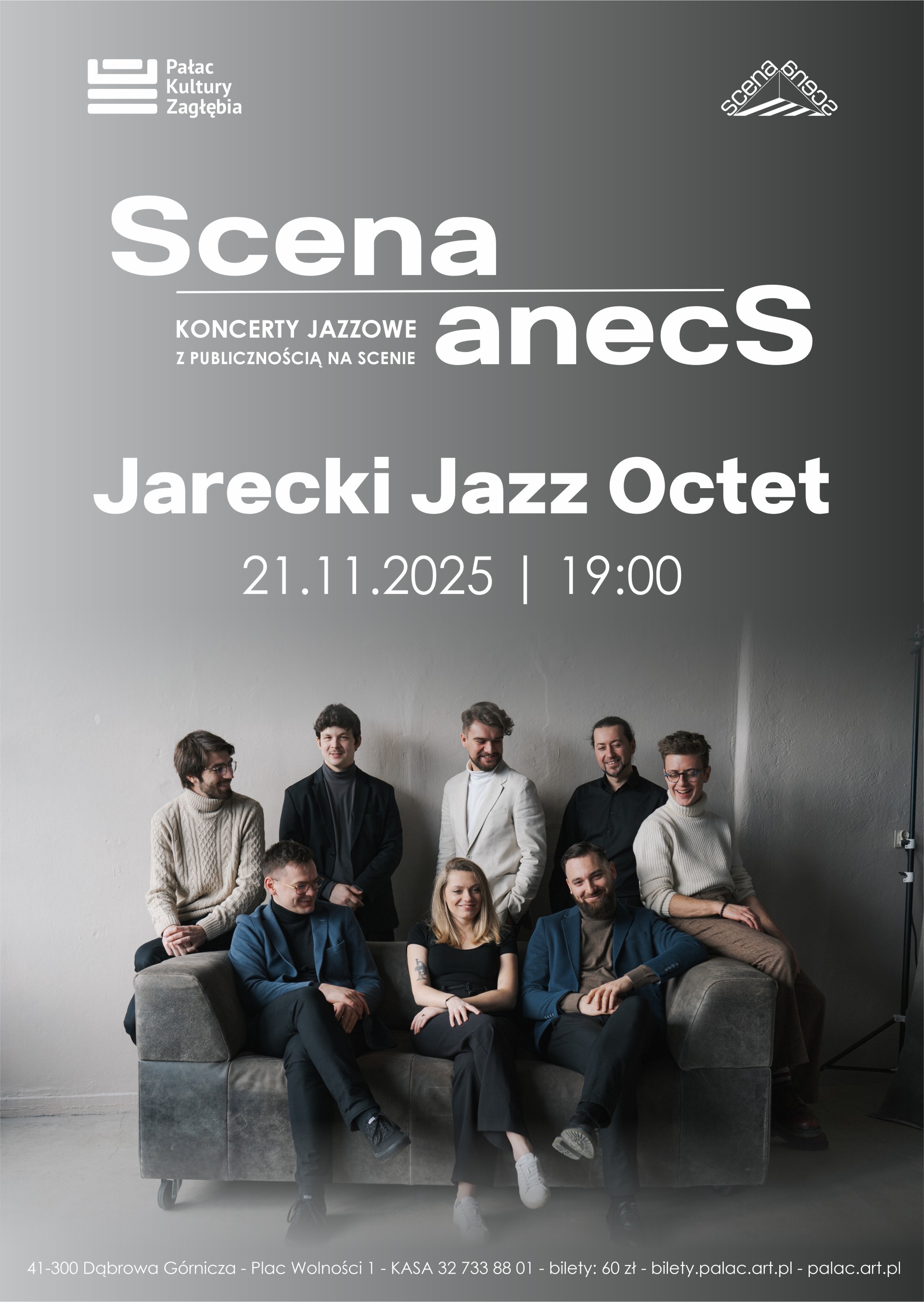 21 listopada o g. 19:00 na deskach sceny Sali Teatralnej Pałacu Kultury Zagłębia wystąpi dla Państwa zespół Jarecki Jazz Octet, w ramach cyklu Scena|anecS.