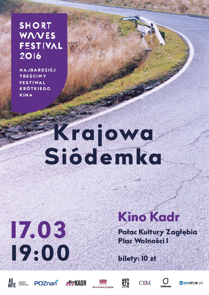 Krajowa Siódemka to nowy, ogólnopolski konkurs filmowy, odbywający się w ramach ósmej edycji Short Waves Festival. Filmowa trasa konkursowa potrwa od 1 marca do 30 kwietnia. Festiwalowa publiczność w głosowaniu wybierze najlepszy krótki metraż, którego reżyser otrzyma nagrodę w wysokości 7 tys. złotych. Wszystko w Waszych rękach!