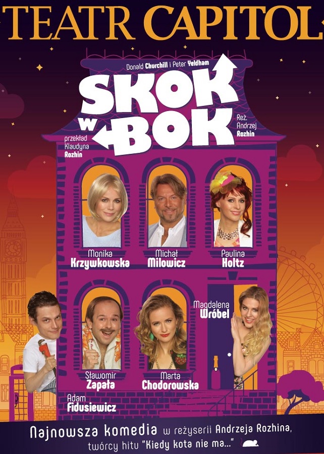 Komedia Skok w bok, autorstwa Donalda Churchilla i Petera Yeldhama, wystawiana była z dużym powodzeniem na londyńskim West Endzie. Ogromną popularnością cieszyła się także we Francji, w Niemczech oraz w RPA. Teraz pora na Polskę!