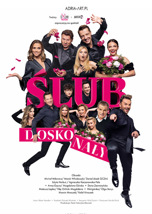 24 marca 2023 zapraszamy do Sali Teatralnej Pałacu Kultury Zagłębia na spektakl komediowy pt. Ślub doskonały w gwiazdorskiej obsadzie.