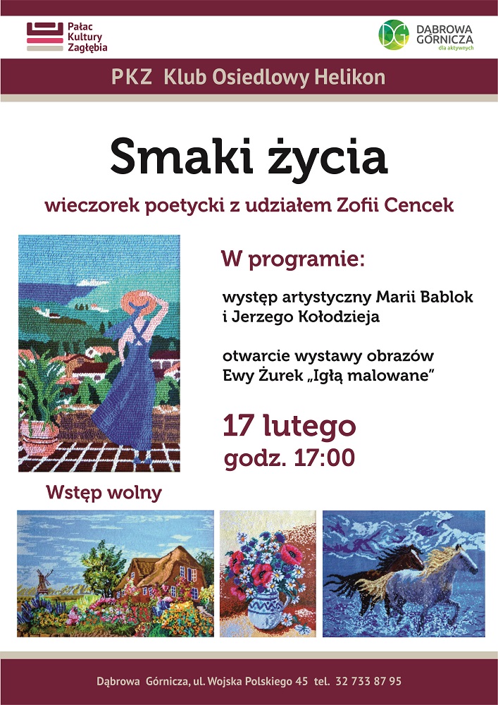 Wieczór pełen mądrych przesłań i dobrej energii –to znak charakterystyczny spotkań z poetką Zofią Cencek, która tym razem zaprezentuje wiersze z nowo wydanego tomiku Smaki życia.