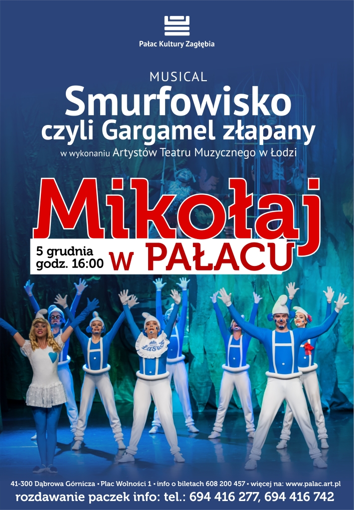 Niebieskie stworki, które zauroczyły miliony dzieci na całym świecie, niedawno skończyły 50 lat. To świetna okazja, by przypomnieć starszym i zapoznać młodsze dzieci z przygodami Zgrywusa, Ciamajdy, Ważniaka, Smurfetki, Papy Smurfa i innych sympatycznych mieszkańców wioski, żyjących (nie zawsze...) zgodną gromadką pośrodku lasu. Smurfy weszły już do historii. Nie ma chyba nikogo, kto nie oglądał w telewizji animowanych filmów wytwórni Hanna-Barbera. I maluchy, i ich rodzice przeżywali niesamowite przygody i śmiali się z wpadek prześladującego Smurfy gapowatego czarodzieja Gargamela. Libretto musicalu Ernesta Brylla opowiada o tym, czego nie było w telewizji: o tym, jak okropny Gargamel został wreszcie złapany i co z tego wynikło.