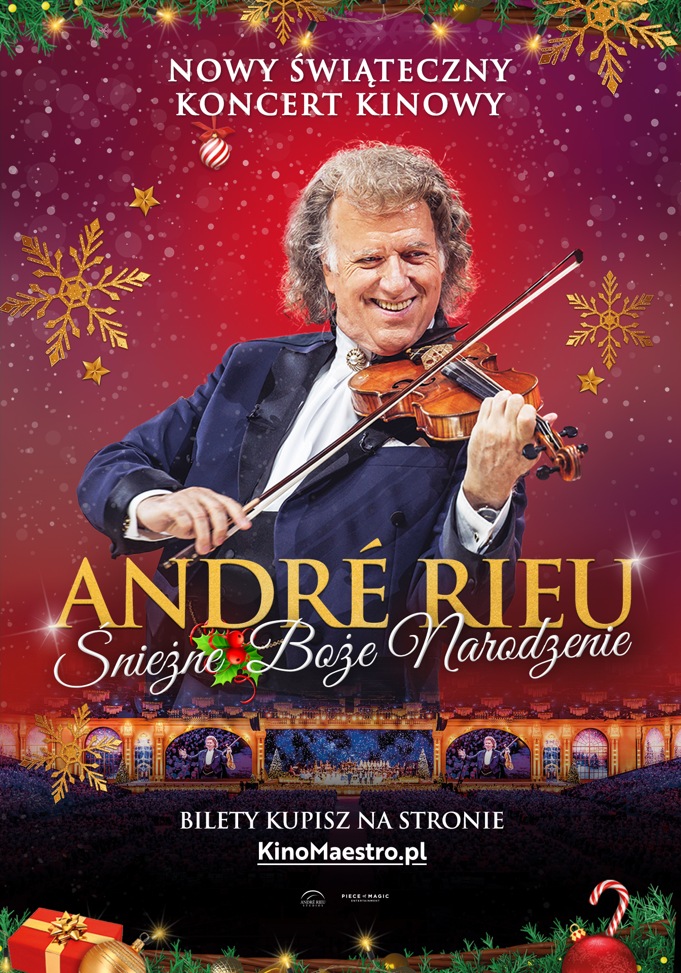 Mamy dla Ciebie zupełnie nowy świąteczny koncert maestra André Rieu i jego Orkiestry Johanna Straussa! Zrób sobie i swoim bliskim niezapomniany prezent i kup bilety do kina na absolutnie oszałamiające „Śnieżne Boże Narodzenie z André Rieu”! Co roku maestro organizuje w swoim rodzinnym Maastricht specjalne gwiazdkowe koncerty. Przybywają na nie dziesiątki tysięcy fanów z całego świata, a dzięki retransmisji do kin mogą je dodatkowo obejrzeć kolejne setki tysięcy widzów. André Rieu zamienia lokalną salę koncertową w magiczną śnieżną krainę, by zaserwować wszystkim wielbicielom wspaniałej muzyki skrzący się blaskiem gwiazd zestaw kolęd i innych świątecznych przebojów. Co w tym roku zaoferuje nam nasz ukochany holenderski król walca? Tym razem André zwraca się do swoich widzów kinowych tymi słowami: