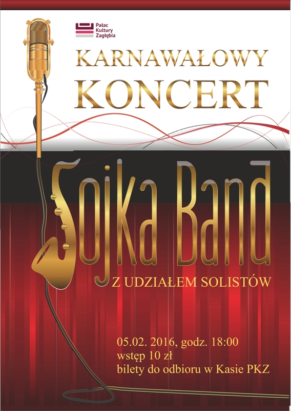 Już 5 lutego, o godzinie 18.00, w Sali Teatralnej Pałacu Kultury Zagłębia odbędzie się koncert jedynej w swoim rodzaju, niepowtarzalnej, dąbrowskiej Orkiestry Rozrywkowej - Sojka Band. Muzycy wraz z solistami wykonają utwory idealnie wpisujące się w klimat karnawałowy. Zapraszamy!
