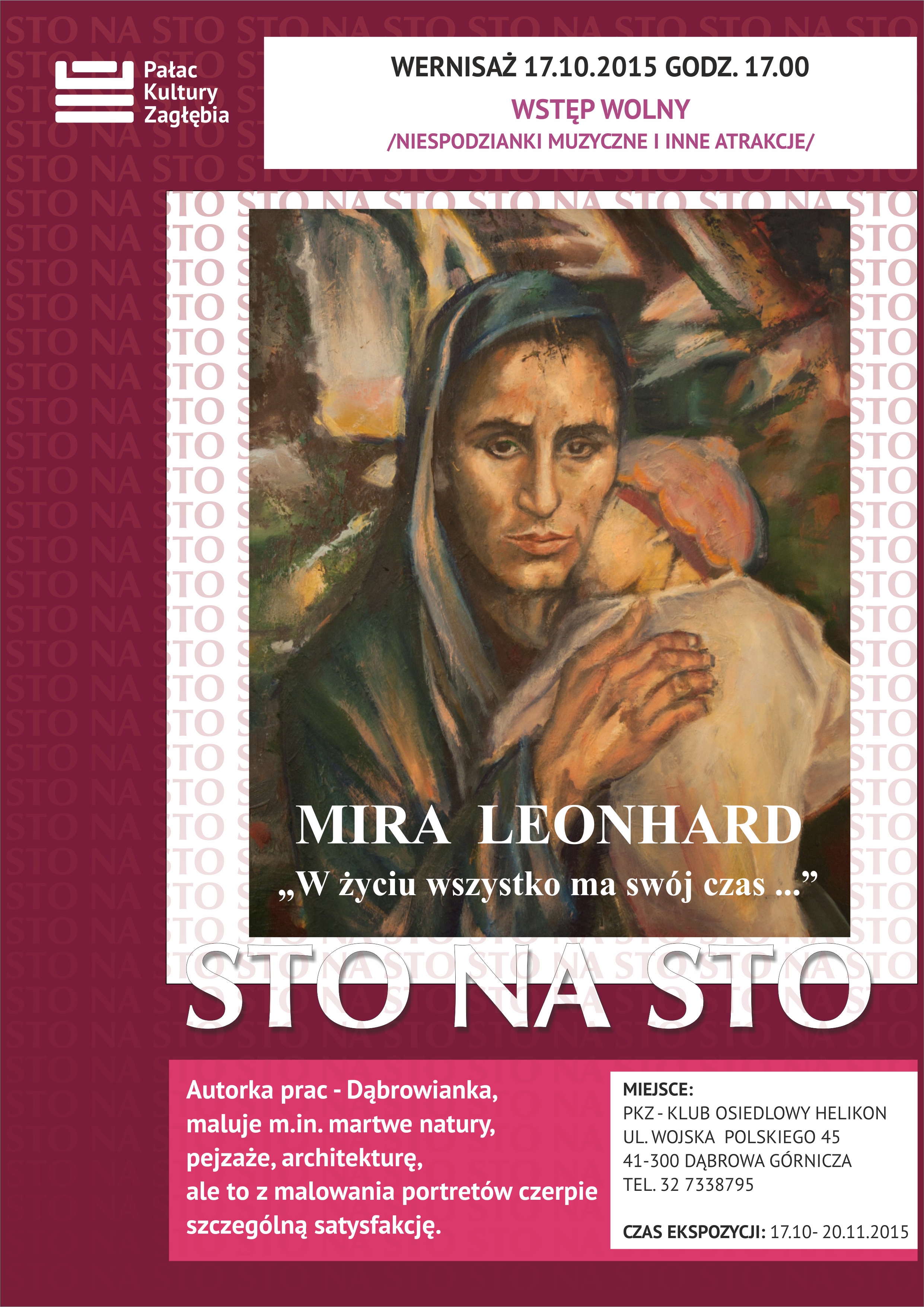Klub Osiedlowy Helikon zaprasza 17 października o godzinie 17:00 na wieczór z malarstwem Miry Leonhard.