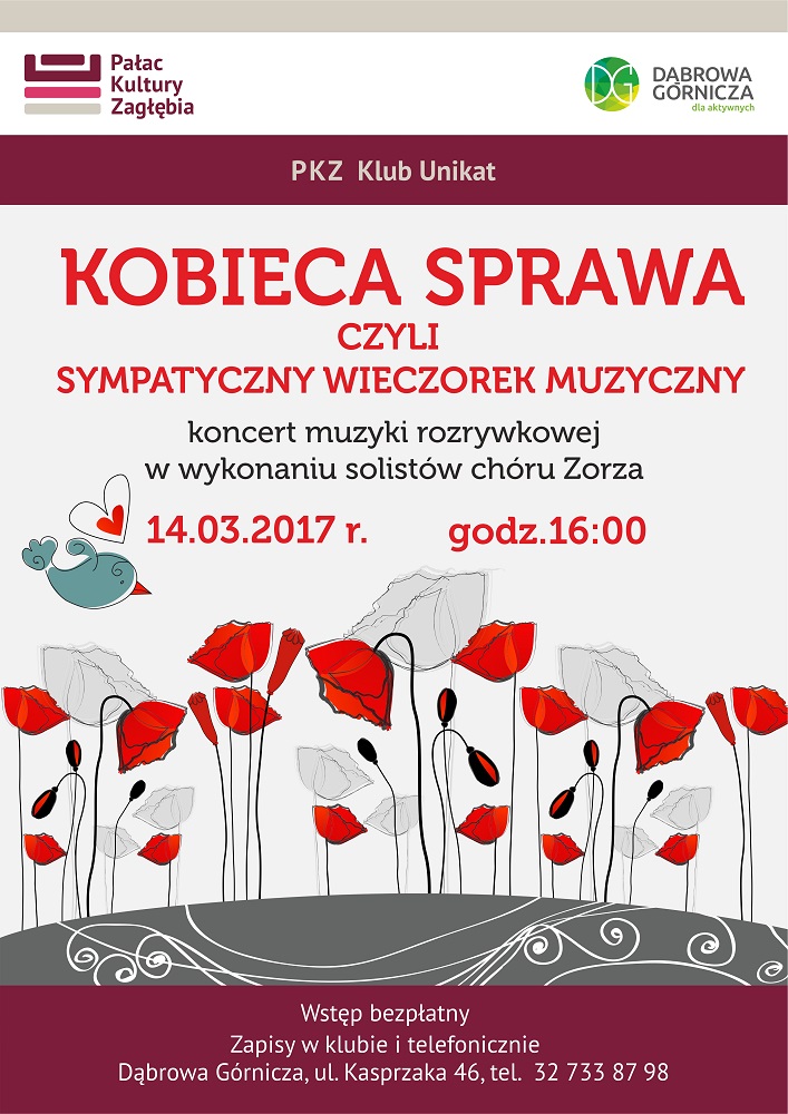Klub Osiedlowy Unikat zaprasza na koncert z okazji Dnia Kobiet pod nazwą Sympatyczny wieczór muzyczny.