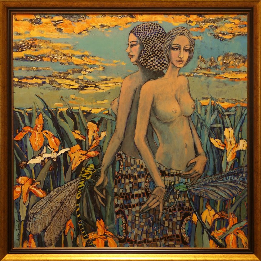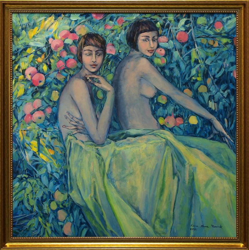 Anna Maria Rusinek - urodzona w roku 1977 w Busku-Zdroju. Ukończyła Państwowe Liceum Plastyczne w Katowicach oraz Akademię Pedagogiczną na wydziale Malarstwa Instytutu Sztuki w Krakowie pod kierunkiem prof. Stanisława Sobolewskiego. Tworzy zarówno drobne formy malarskie, jak i duże płaszczyzny figuralne. Obecnie zajmuje się aktem i portretem w malarstwie, a szczególnie jest jej bliska art deco przefiltrowana przez jej wrażliwość w niepowtarzalny sposób nadający jej obrazom rys nieprzeciętnej indywidualności. Charakterystyczne dla Anny Marii Rusinek są powroty do przeszłości, nie tylko w sferze idei intelektualnej czy formalnej. Jej sztuka jest powrotem do coraz rzadszej dziś rzetelnej pracy technologicznej. Artystka brała udział w licznych wystawach indywidualnych, a jej prace znajdują się w kolekcjach i zbiorach prywatnych w kraju, Europie i za oceanem.