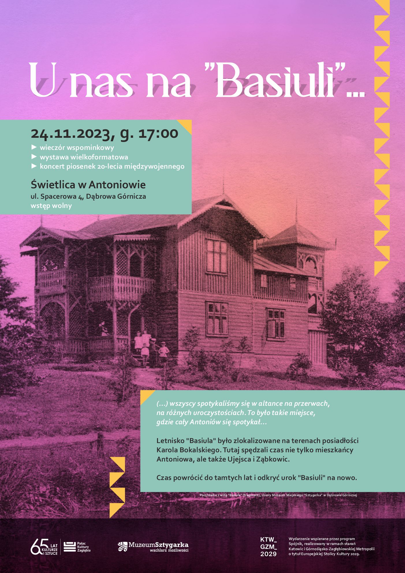 U nas na "Basiuli"... to wieczór wspominkowy, 24.11 o godz. 17:00 w świetlicy w Antoniowie, któremu towarzyszyć będzie wystawa wielkoformatowa oraz koncert piosenek 20-lecia międzywojennego. Wydarzenie jest pokłosiem spotkania autorskiego z Marzeną Orczyk-Wiczkowską, autorką książki "Basiula", w której wątki historyczne przeplatają się z fikcją. Tak oto odżyły wspomnienia o dawnym kurorcie, jego mieszkańcach i przyjezdnych oraz, czasem nietypowych, kolejach losu.
