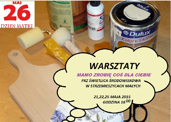 Zapraszamy wszystkie dzieci (i młodzież) do Świetlicy w Strzemieszycach Małych, na warsztaty "Upominek dla mamy", na których będzie można własnoręcznie wykonać prezent dla mamy.