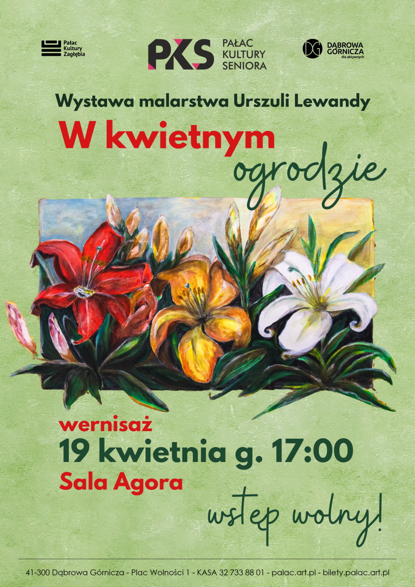 Pałac Kultury Seniora zaprasza na pierwszą wystawę w ramach nowego cyklu Talenty PKS. W kwietnym ogrodzie to tytuł wystawy malarstwa autorstwa Urszuli Lewandy, której otwarcie odbędzie się 19 kwietnia o 17:00 w pałacowej Sali Agora.