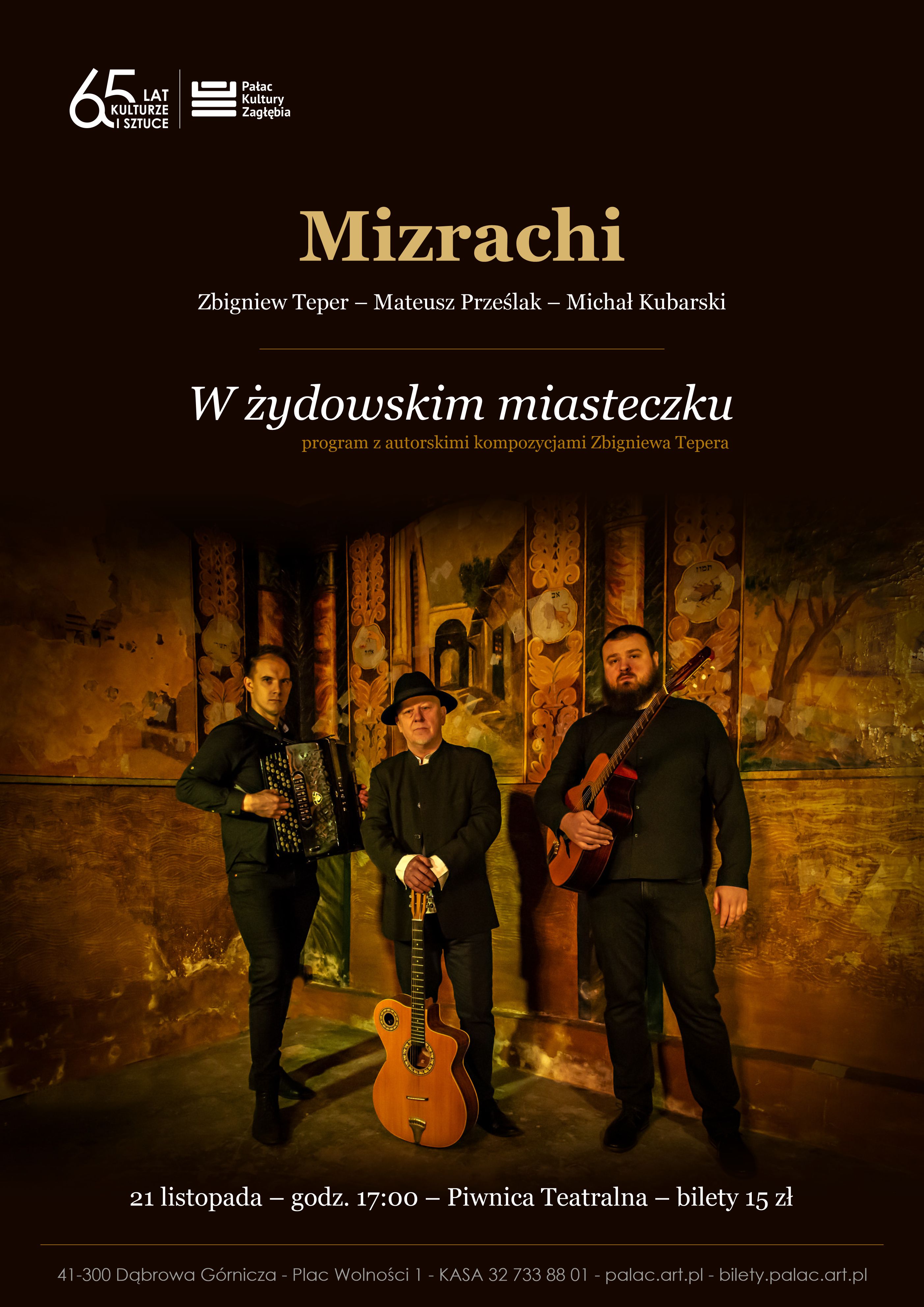 21 listopada o 17:00 zapraszamy do Piwnicy Teatralnej Pałacu Kultury Zagłębia na koncert W żydowskim miasteczku, w wykonaniu zespołu Mizrachi.