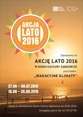 Zapraszamy na Akcję Lato z Domem Kultury Ząbkowice pod hasłem „Wakacyjne klimaty” w terminach: