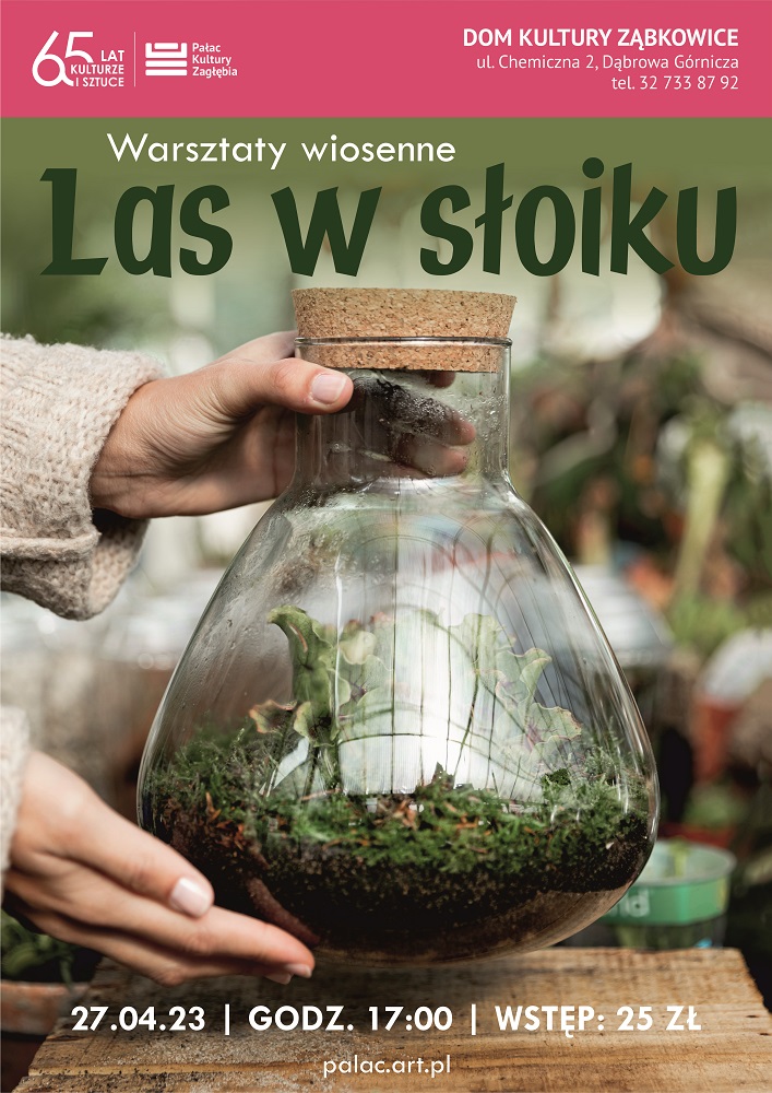 Dom Kultury Ząbkowice zaprasza 27 kwietnia o godzinie 17.00 na warsztaty wiosenne realizowane w ramamch cyklu Artystyczna Kawiarnia. Zajecia te mają na celu popularyzację artystycznego i twórczego spędzania wolnego czasu. Na warsztatach wiosennych uczestnicy wykonają las w słoiku za pomocą materiałów takich jak: ziemia, sadzonki roślin, sukulenty, kamienie, mech, drewno, keramzyt itp. Uczestnikami warsztatów mogą być rodzinne duety. Liczba miejsc ograniczona.