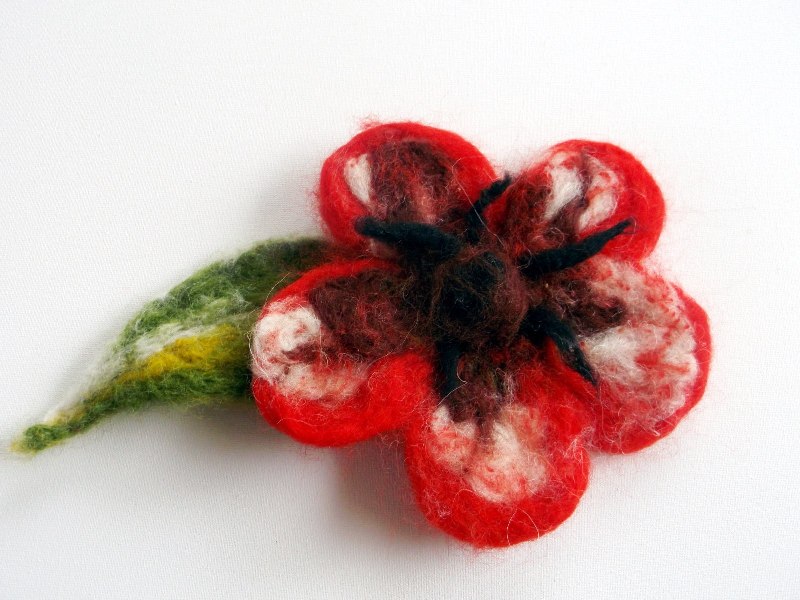 4. Łączenie technik filcowania na mokro i sucho. Doskonalenie technik. Broszki filcowe.