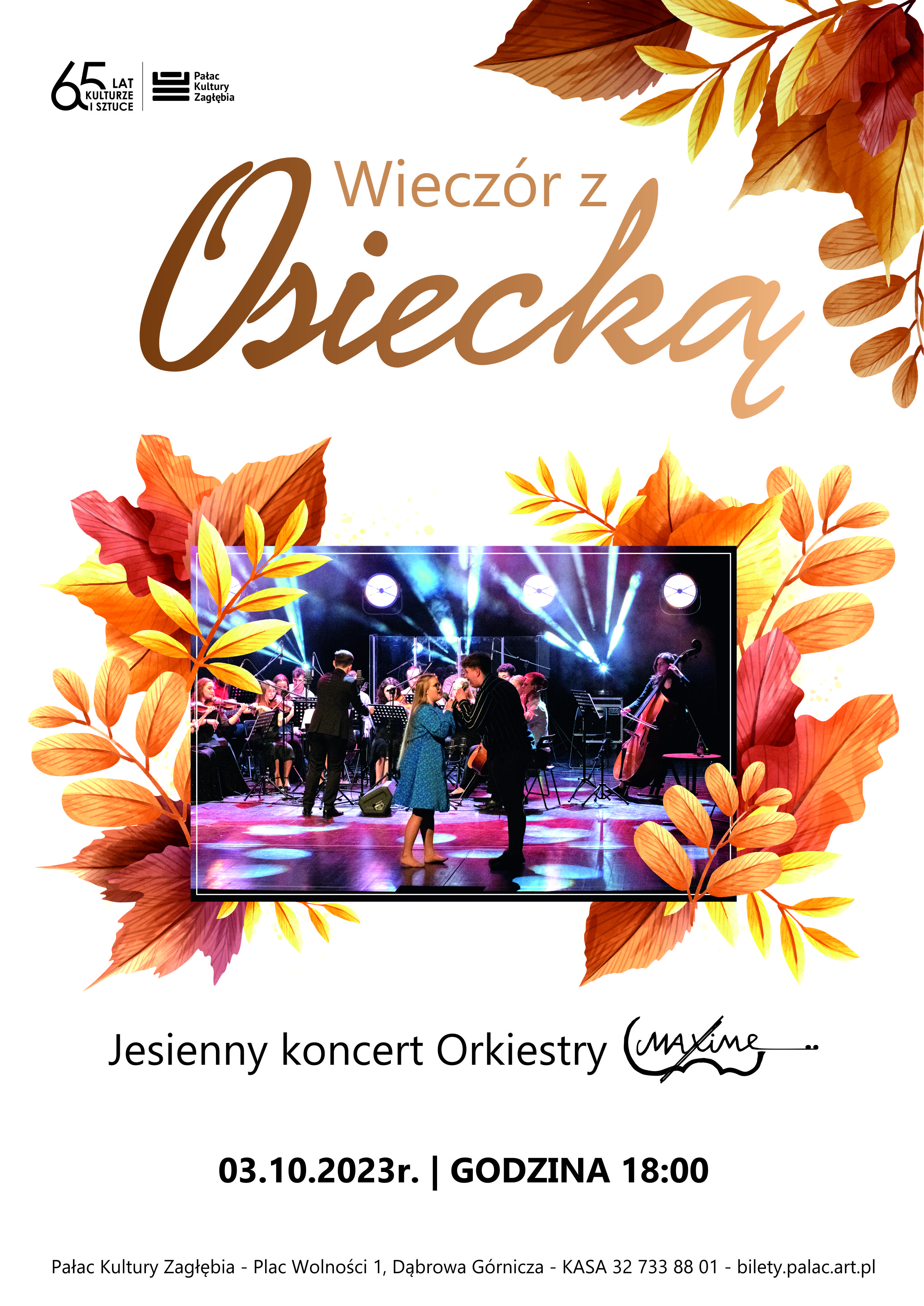 3 października o 18:00 zapraszamy na niezapomniany Wieczór z Osiecką - jesienny koncert orkiestry Maxime, który odbędzie się w Sali Teatralnej Pałacu Kultury Zagłębia.