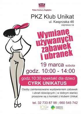 Na krótko przed dużym wietrzeniem szaf w PKZ, zapraszamy na "małe sobotnie wietrzenie" do Klubu Osiedlowego Unikat. Po porządkach świątecznych  został ci worek dziecięcych ubrań i masa nie potrzebnych zabawek? Chcesz się tego pozbyć a przy okazji zdobyc coś dla swojej pociechy? Zapraszamy do nas. Decyduje kolejnośc zgłoszeń. ilośc stoisk niestety ograniczona. Dla tych którzy przybędą z pociechami dodatkowe atrakcje m.in.  o 10.30 wystapi Cyrk Unikatus. Wstęp wolny.
