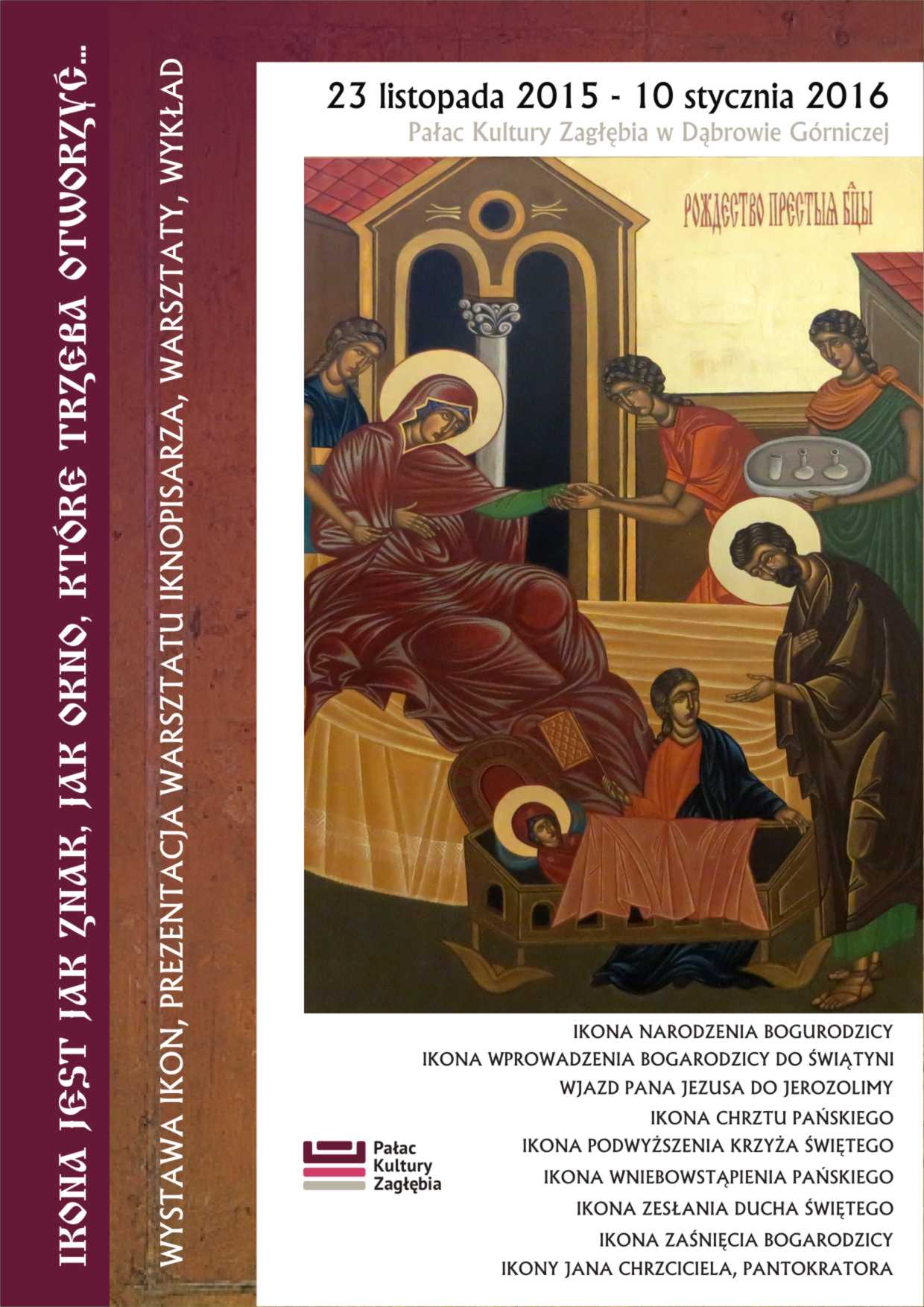 Wystawę ikon napisanych/namalowanych przez studentów studiów podyplomowych „Ikonopisarstwo. Studium chrześcijańskiego Wschodu” Wydziału Teologicznego Uniwersytetu Opolskiego rok 2015/2016, można oglądać w dniach od 23 listopada 2015 r. do 10 stycznia 2016 r. w przestrzeniach wystawienniczych (parter), w godzinach pracy Pałacu Kutlury Zagłębia . Ta niezwykła prezentacja ikon zbiorowych przygotowana została z myślą o świętach Bożego Narodzenia, Trzech Króli oraz Jubileuszu 1050. rocznicy chrztu Polski.