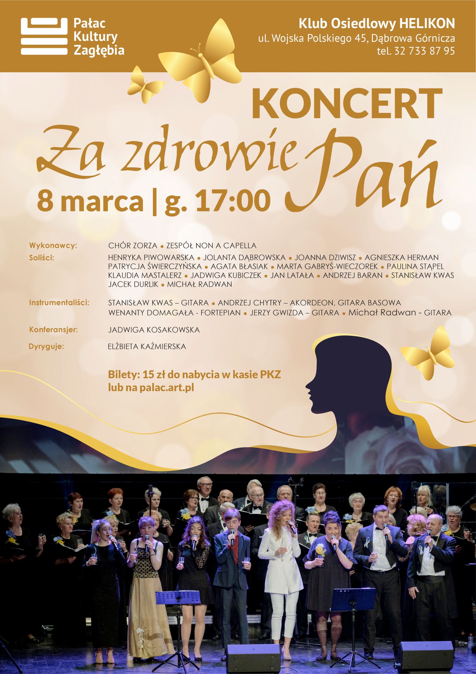 8 marca o 17:00 zapraszamy do Klubu Osiedlowego Helikon na specjalny koncert, pt. Za zdrowie Pań - z okazji Dnia Kobiet, podczas którego wystąpi Chór Zorza pod kierownictwem Elżbiety Kaźmierskiej oraz zespół Non a Capella wraz z solistami i instrumentalistami!
