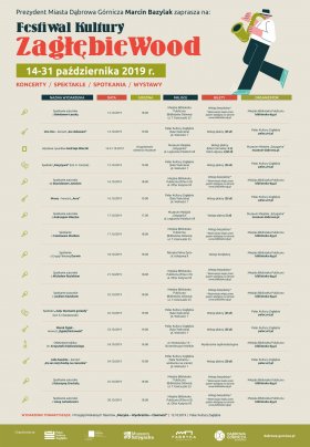 Tegoroczna odsłona Dąbrowskiego Festiwalu Kultury ZagłębieWood to przede wszystkim koncerty, spektakle, wystawy i spotkania autorskie, które odbędą się w lokalnych instytucjach kultury. Festiwal w Pałacu Kultury Zagłębia rozpocznie się 14 października od koncertu zespołu Wojciecha Waglewskiego, a zakończy 24 października koncertem Julii Sawickiej. Szykuje się miesiąc wypełniony atrakcjami, których harmonogram można znaleźć TUTAJ.