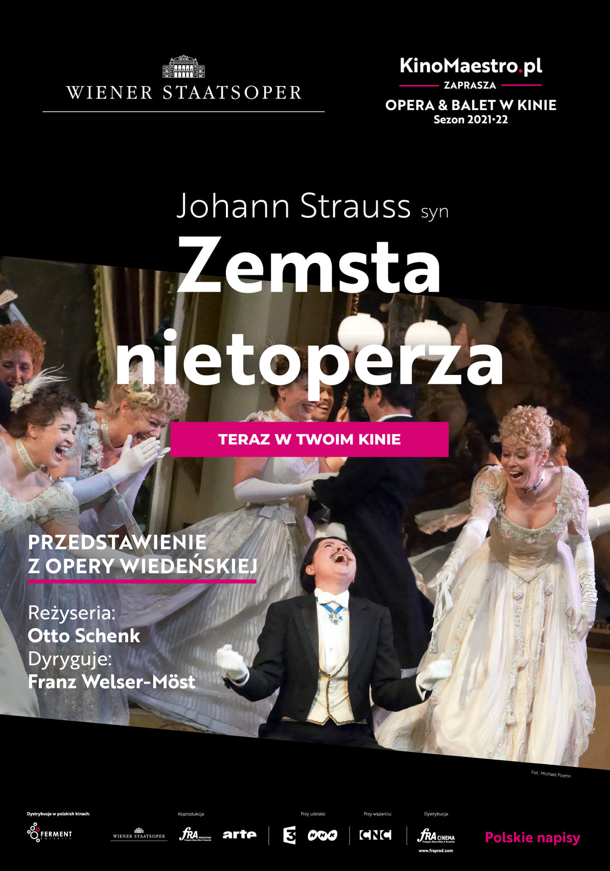 Legendarna Opera Wiedeńska prezentuje arcyklasyczne wykonanie jednej z najsłynniejszych operetek świata: "Zemsty nietoperza" Johanna Straussa syna. Tym roztańczonym i rozśpiewanym spektaklem dyryguje tym razem Franz Welser-Möst, jeden z najwybitniejszych dyrygentów operowych i operetkowych świata, na co dzień współpracujący między innym z Festiwalem w Salzburgu. Spektakl Opery Wiedeńskiej, jak głoszą krytycy od 40 lat, jest wzorcem wystawienia operetki. Trzy godziny świetnej zabawy przy dźwiękach walców, polek, czardaszy, galopów i marszy, przepiękne dekoracje i kostiumy, zabawna intryga i szampański humor – to czeka kinowych widzów.