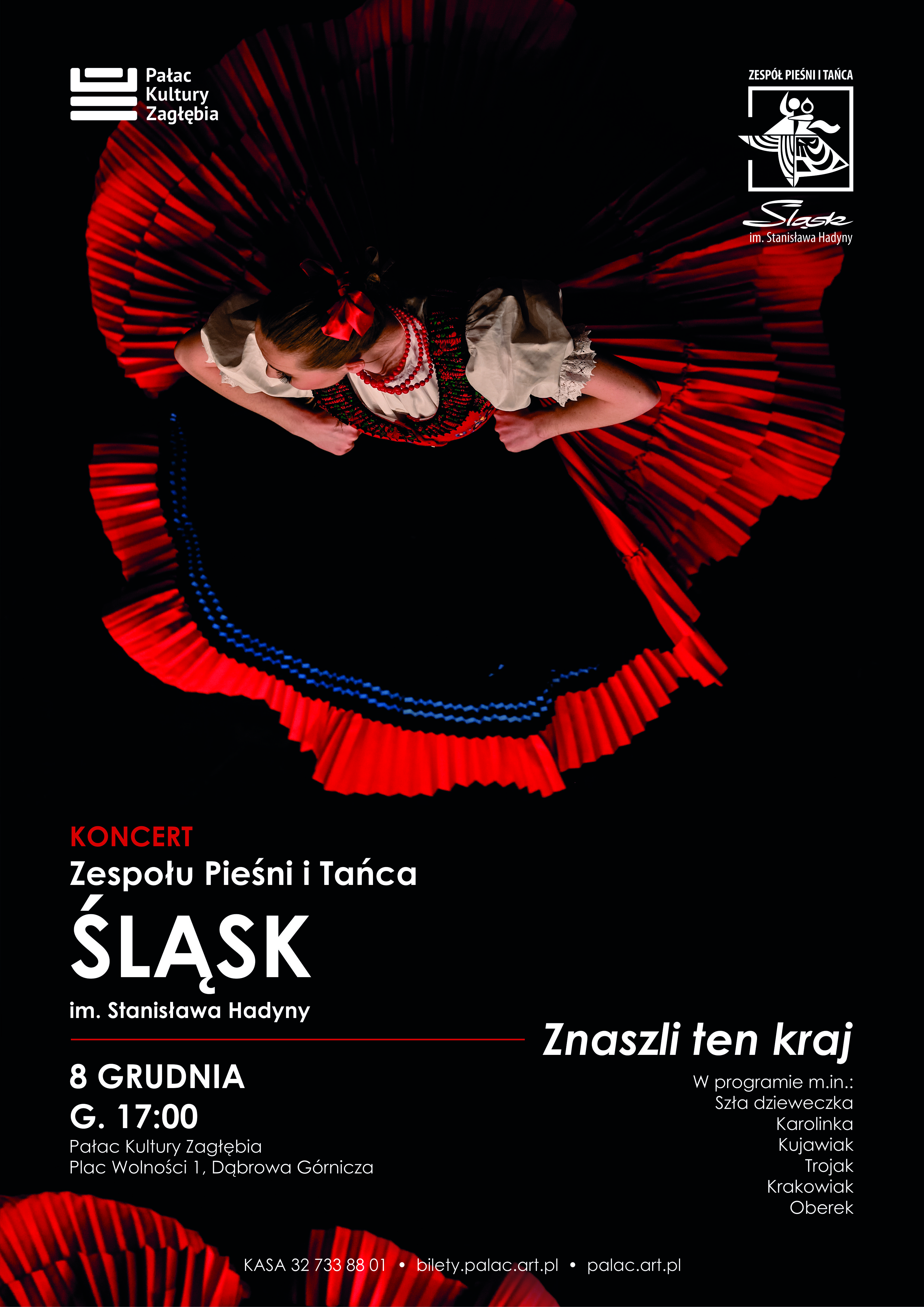 8 grudnia o godzinie 17:00 na głównej scenie Pałacu Kultury Zagłębia zapraszamy na koncert Zespołu Pieśni i Tańca Śląsk im. Stanisława Hadyny "Znaszli ten kraj".